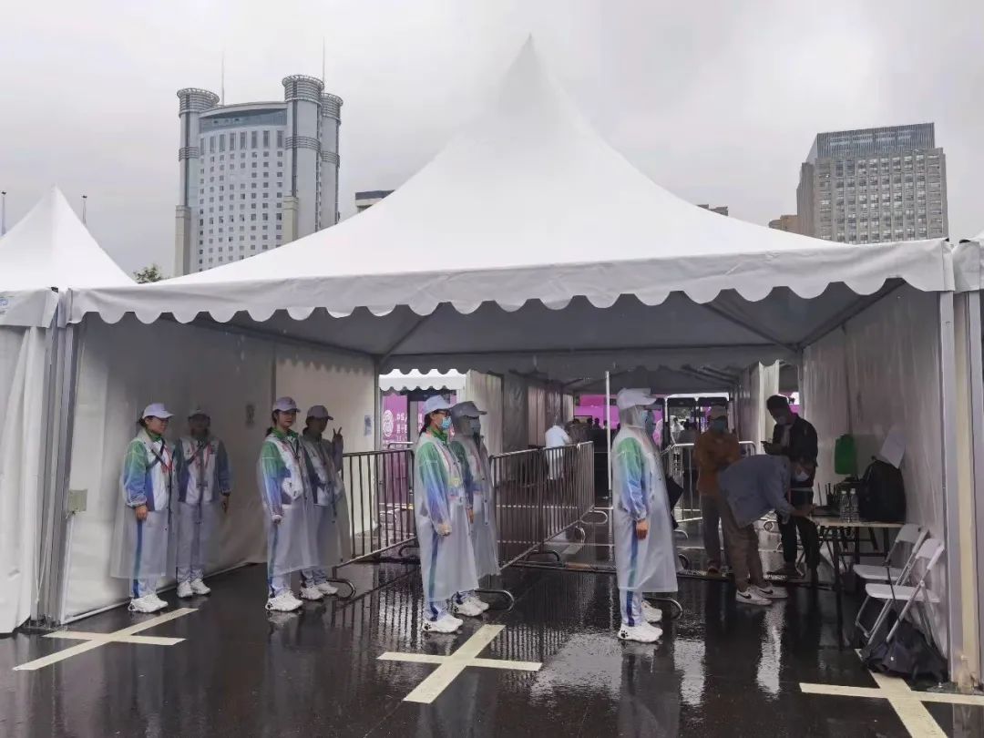 在开闭幕式演出中,我们严格遵循不接种不涉赛相关工作实施方案的文件要求,参与师生全部完成新冠疫苗接种,积极配合按要求健康检测、有序核酸,短短两个月内师生人均核酸检测三十多次。