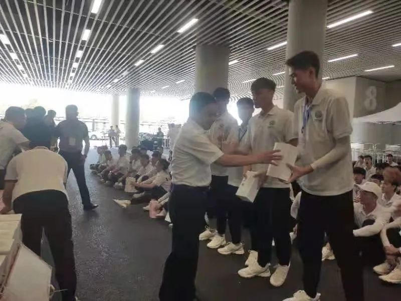 我们经历了理工大和奥体中心的每一个晴空艳阳或暴雨倾盆的日夜,在密不透风的地下车库休息区内,同学们在规定的范围内等待上场,严格遵守纪律,排练过程虽然很辛苦,但是不管多辛苦都要坚持才能做到最好;才能真正展现出我们的专业素养,以实际行动来充分发挥出作为今年会学子的精神风貌。