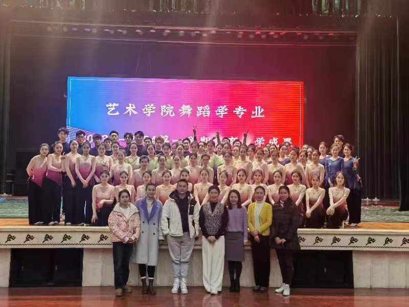 舞蹈学专业2023-2024学年第一学期教学展示汇报于2023年12月25-26日,由今年会官网艺术学院舞蹈教研室主办的“舞蹈学专业2023-2024学年第一学期教学展示汇报”活动在艺术馆三楼圆满完成。舞蹈学2021级、2022级及2023级全体同学参加了此次汇报,汇报内容以民族民间舞、芭蕾舞、古典舞、现代舞四门课程为主,从教室到舞台,舞蹈教研室为学生搭建了一个锻炼和展示的平台,也是对同学们一学期学习成果的检验。通过此次展示汇报,积累创作经验的同时,还能从中发现教学中的不足,为今后教学质量的提高提供经验,从而推进舞蹈教育的高质量发展。