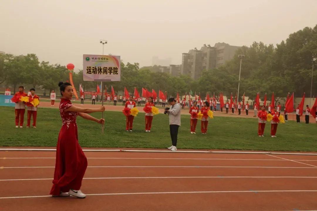 艺术学院学工办老师以及学生会干部在运动会开幕式前期的准备工作中,付出了大量的精力和时间。同时对学生们的方阵步伐、队形以及动作进行多方面指导,使方阵队伍更加整齐有序。