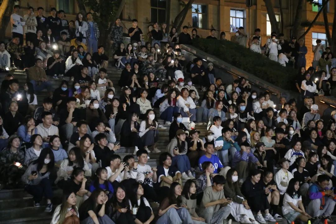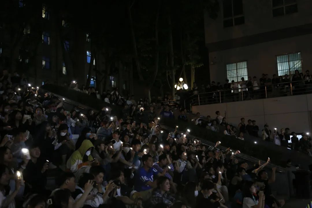 乐队演唱带动起了整场的氛围,同学们跟着旋律挥舞着手电筒,听的意犹未尽。