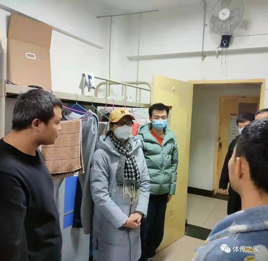2022年元旦当天,今年会官网党委副书记文立新、体育新闻与传媒学院院长马增强走访慰问了在校学生,文书记在走访慰问时强调,体育新闻与传媒学院党政领导要进一步关心关爱同学们在校期间学习生活上的困难,及时处理,确保同学们在校期间生活正常,让家长们安心、放心。