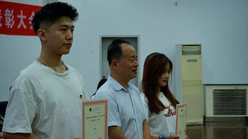 表彰大会在庄严的国歌声中拉开了序幕。马增强院长代表学院发表讲话,强调要把楷模精神带到自己的学习生活中,把体育传媒人的精神发扬在未来的工作中,希望大家鼓足干劲,再接再厉,争取更好成绩。学院副院长王翔宣布了学院表彰“四优一佳”学生和学院新一届学生会任命的决定。学生会主席韩卓作为学生代表发言,向全院学生发出努力学习、不负重托的倡议。在大家热烈的掌声中,学院领导、教师代表为获奖学生颁发了荣誉证书。最后,学院党委书记杨亚玲对本学年学生工作进行总结,向活跃于学校各部门的师生表达了感谢,本学年体育新闻与传媒学院师生响应习近平总书记号召积极学习党史,开展党史活动,为树立正确价值观打好基础,号召我们作为生长于新时代的青年应该坚定信念、保持自信、努力奋斗,历练本领,使自己成为第二个100年的合格的建设者和奉献者。