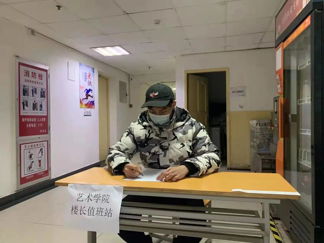 艺术学院全力以赴响应上级号召,在艺术学院党委书记丁雪艳与艺术学院院长杨占军的指导下,由艺术学院学工办主任黄宏叶与学工办副主任刘薇通过线上进行工作部署,2019级辅导员赵静雯与2020级兼职辅导员车栋线下积极执行,监督寝室长履行《寝室长疫情期间工作职责》、学生履行《艺术学院进出入管理方案》。