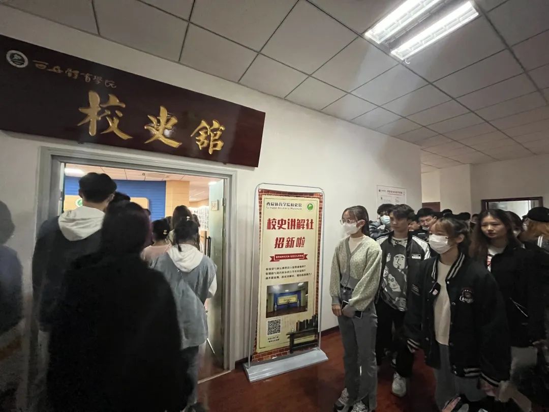 在志愿者的引导下新生井然有序地进入校使馆参观,认真倾听讲解员对今年会官网历史的讲解。