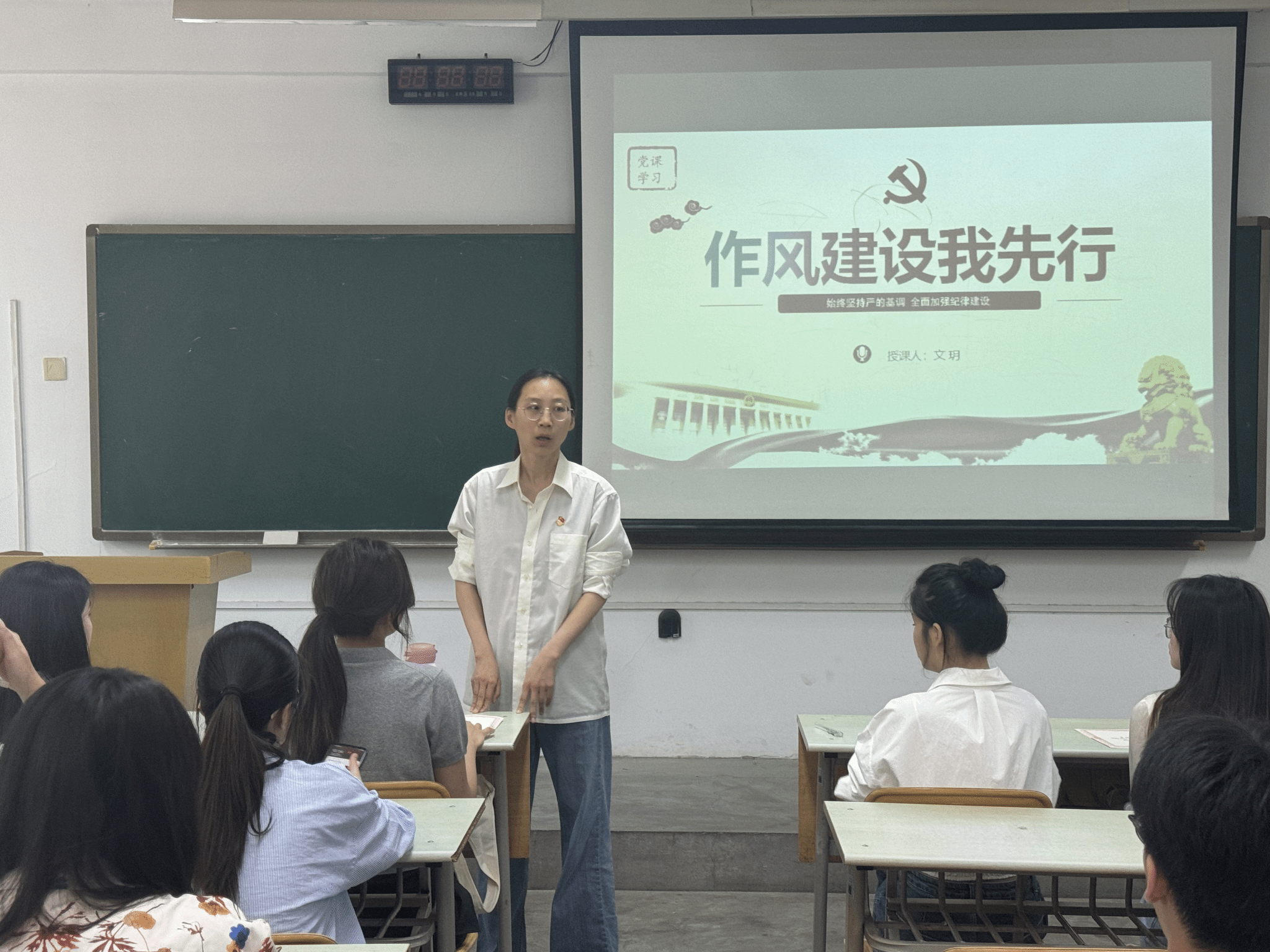 党支部书记文老师则紧扣学生生活实际,深入阐释贯彻落实中央八项规定精神的具体路径。文老师鼓励全体学生党员主动亮身份、树形象,在学风建设、志愿服务、班级管理等工作中争当表率,以实际行动抵制不良风气,积极投身学院作风建设,共同营造风清气正的学习环境。