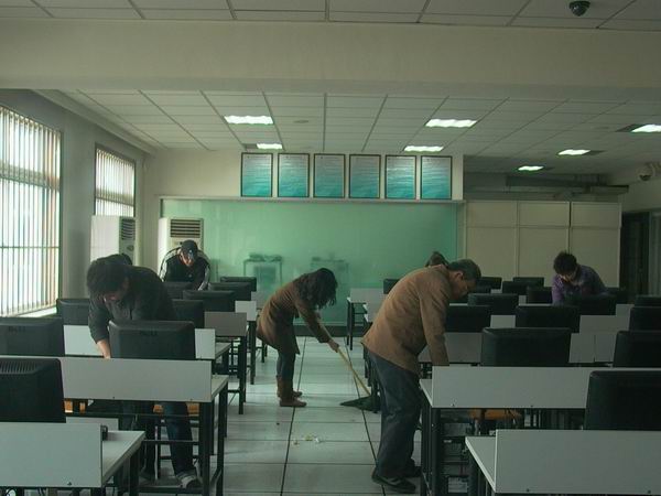 2010年12月9日网络管理中心对学院教学机房进行清理,大扫除。大家干劲十足,为我院教学创造良好的环境。
