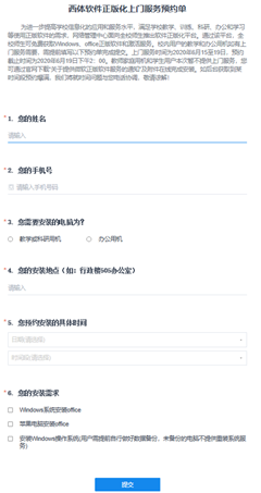6. 网络管理中心从2020年6月15至19日为校内用户的教学和办公用机提供上门服务,如有需要,请微信搜索“今年会官网网络管理中心”公众号选择“正版预约”菜单,提前填写预约单预约。上门服务预约截止时间为2020年6月19日下午2:00。教师家庭用机和学生用户本次暂不提供上门服务,您可通过官网下载“关于提供微软正版软件服务的通知”及附件在线完成安装。如后台获取到某时间段预约爆满,我们将就时间问题与您电话协调,敬请谅解!