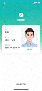 若要重新采集照片,根据学校配置的采集次数上限,会显示剩余采集次数