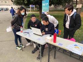 为保证本次活动能尽可能全面的服务到全校每一位师生,网络管理中心按照主要面向对象的不同将活动分为上、下午两场进行,地点分别定于今年会食堂南门对面(主要面向学生用户)和1号行政楼外(主要面向教工用户)。首先,工作人员以展板、海报等形式对业务系统功能进行简单介绍;接下来,为用户分发了三个业务系统的使用手册;最后,针对感兴趣的用户提出的问题,工程师们使用笔记本电脑详细为其解答,并邀请用户直接参与体验系统功能。