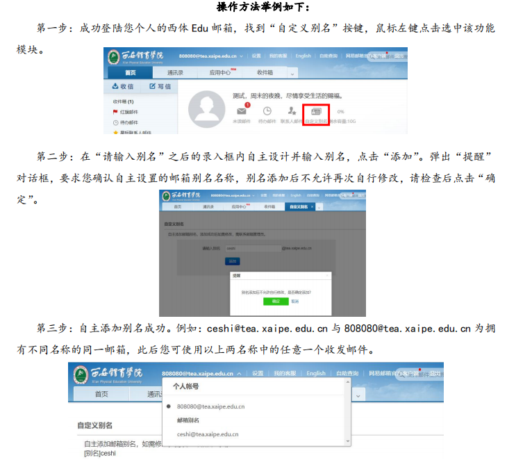 为方便全校师生居家办公、科研学习,我们还对校园Edu邮箱别名功能模块进行部署测试。撰写使用手册及通知文件,通过完善网络应用平台的功能,让校园邮箱服务更人性、更便捷。