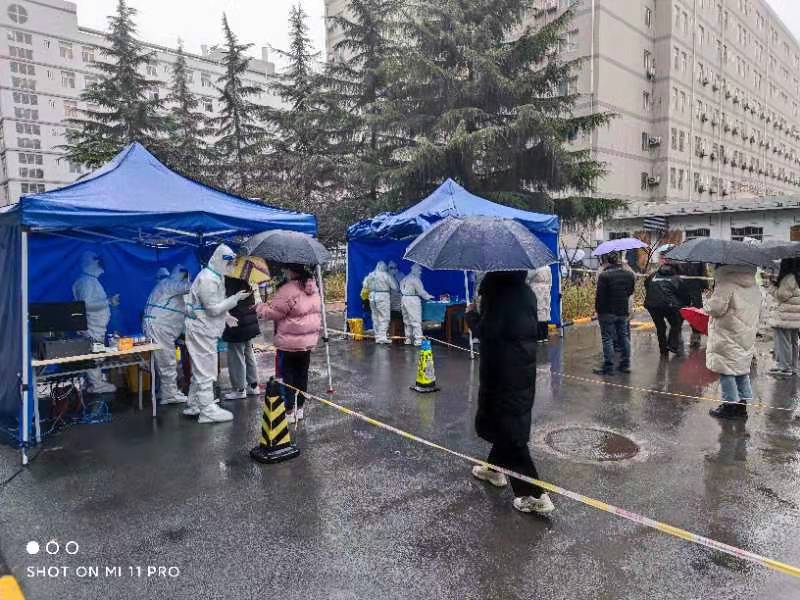 淅淅沥沥的一场细雨打破了校园的寂静,网络管理中心保障组的工作人员早已守在了核酸采集点。雨水可以净化环境,却也可能对线路设备带来危险,直到确保网络正常,检测顺利进行,工作人员才深深的舒了一口气。