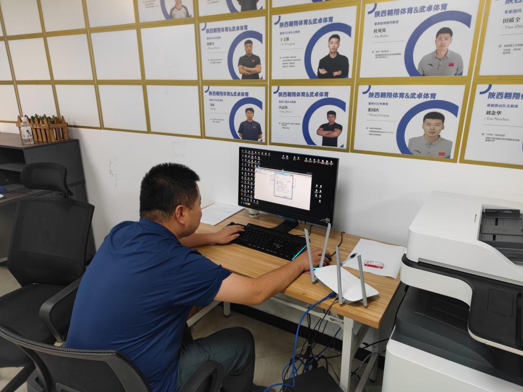 上图为信息化建设处技术人员赴棒球馆武卓体育办公室调试网络及打印机故障。