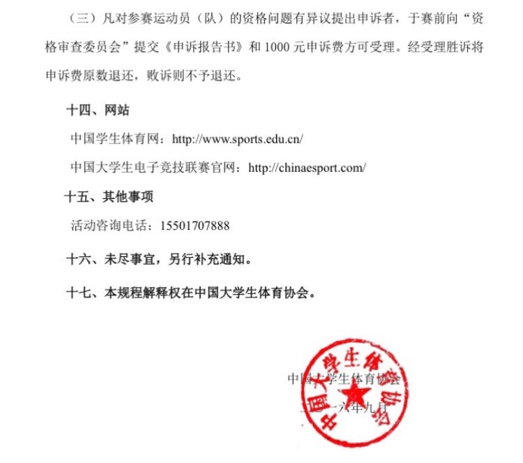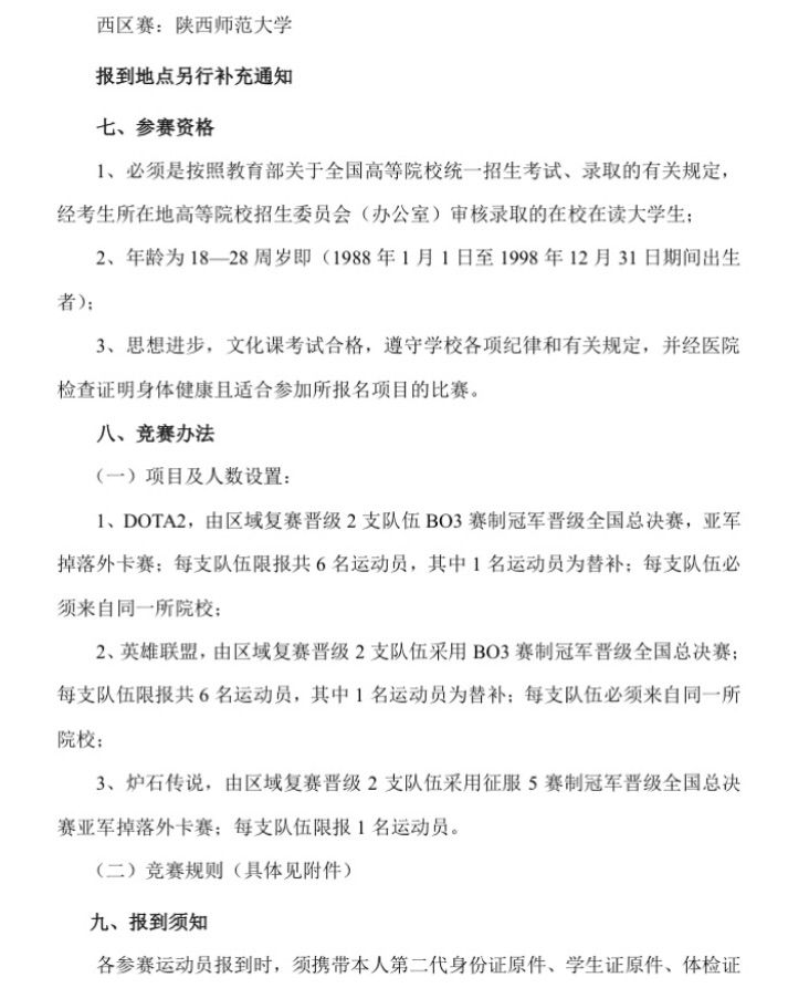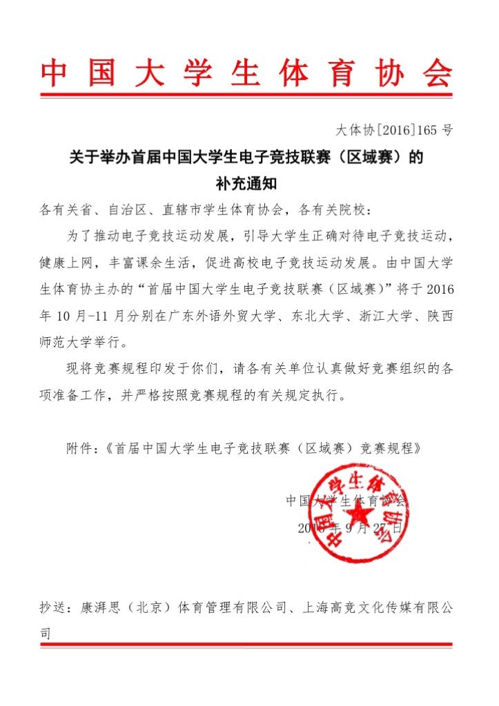 关于举办首届中国大学生电子竞技联赛(区域赛)的补充通知
