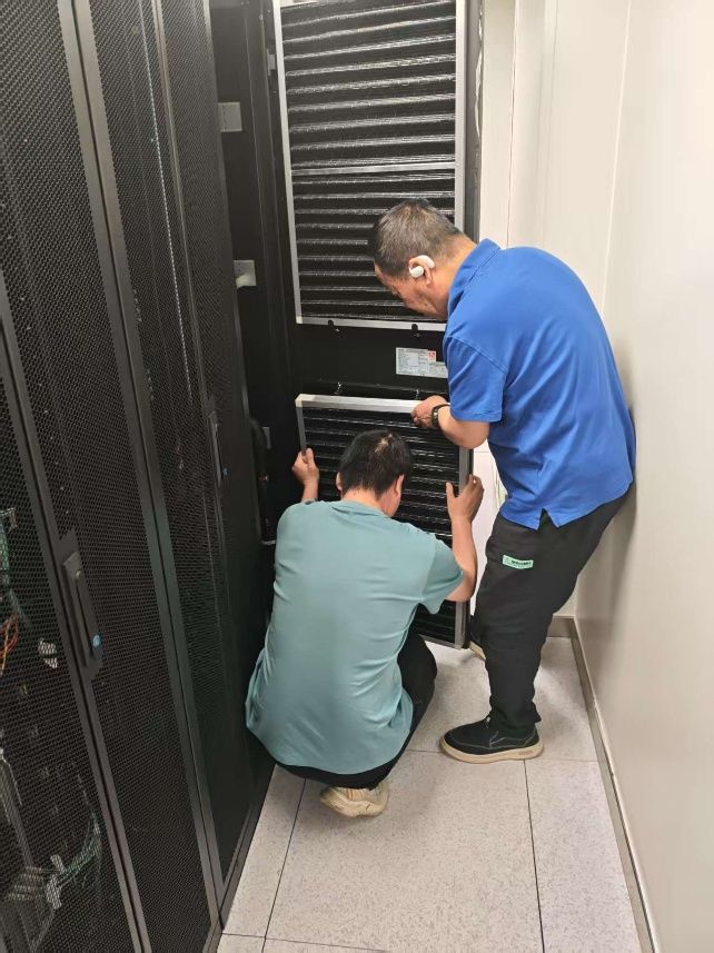 此次维护工作中,团队秉持为校节约资金的理念,充分挖掘自身技术潜力,主动承担起原本需外包的复杂维护任务。工作人员不惧辛劳、迎难而上,严格落实除尘、滤网清洗等基础作业,同时针对制冷系统运行状态、温湿度控制精度、设备运行参数等关键指标进行深度巡检,并对发现的设备故障和需要更换的耗材及时提交报告。