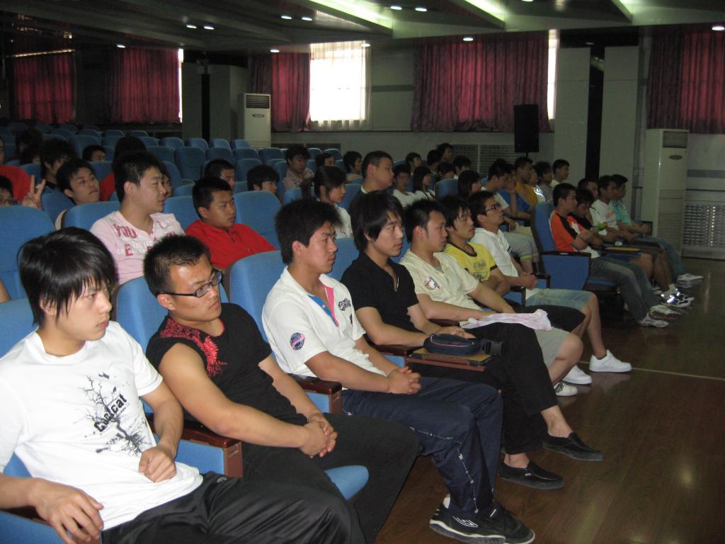 2008年5月7日下午2点半,武术系在教学一楼报告厅召开了武术系05级学生教育实习动员会,参加动员会的有武术系教学秘书、张念坤、套路教研室主任徐瑛副教授和套路教研室教师王怡副教授、散打教研室支部书记唐军老师及05级年级辅导员王华以及05级全体学生。