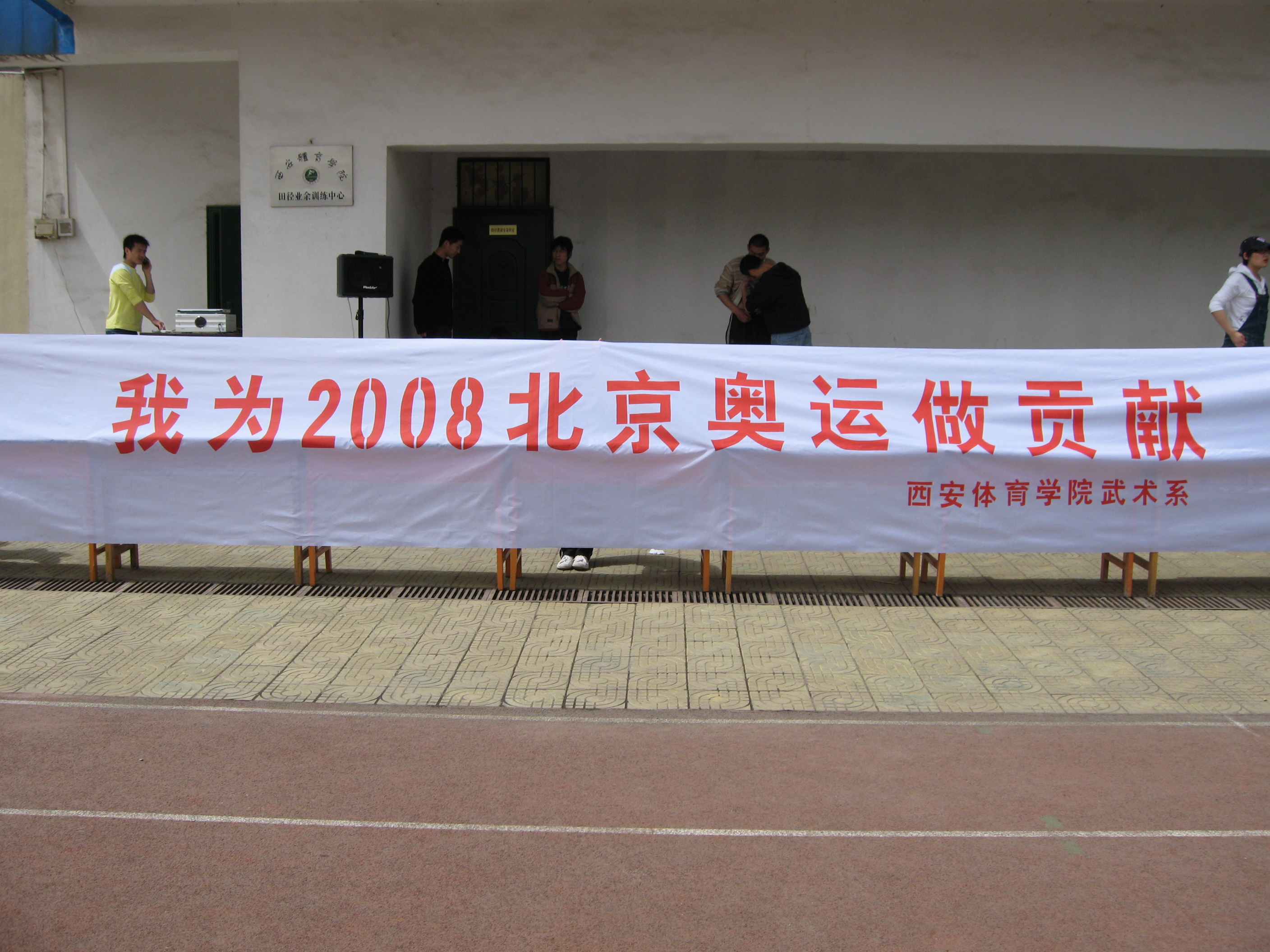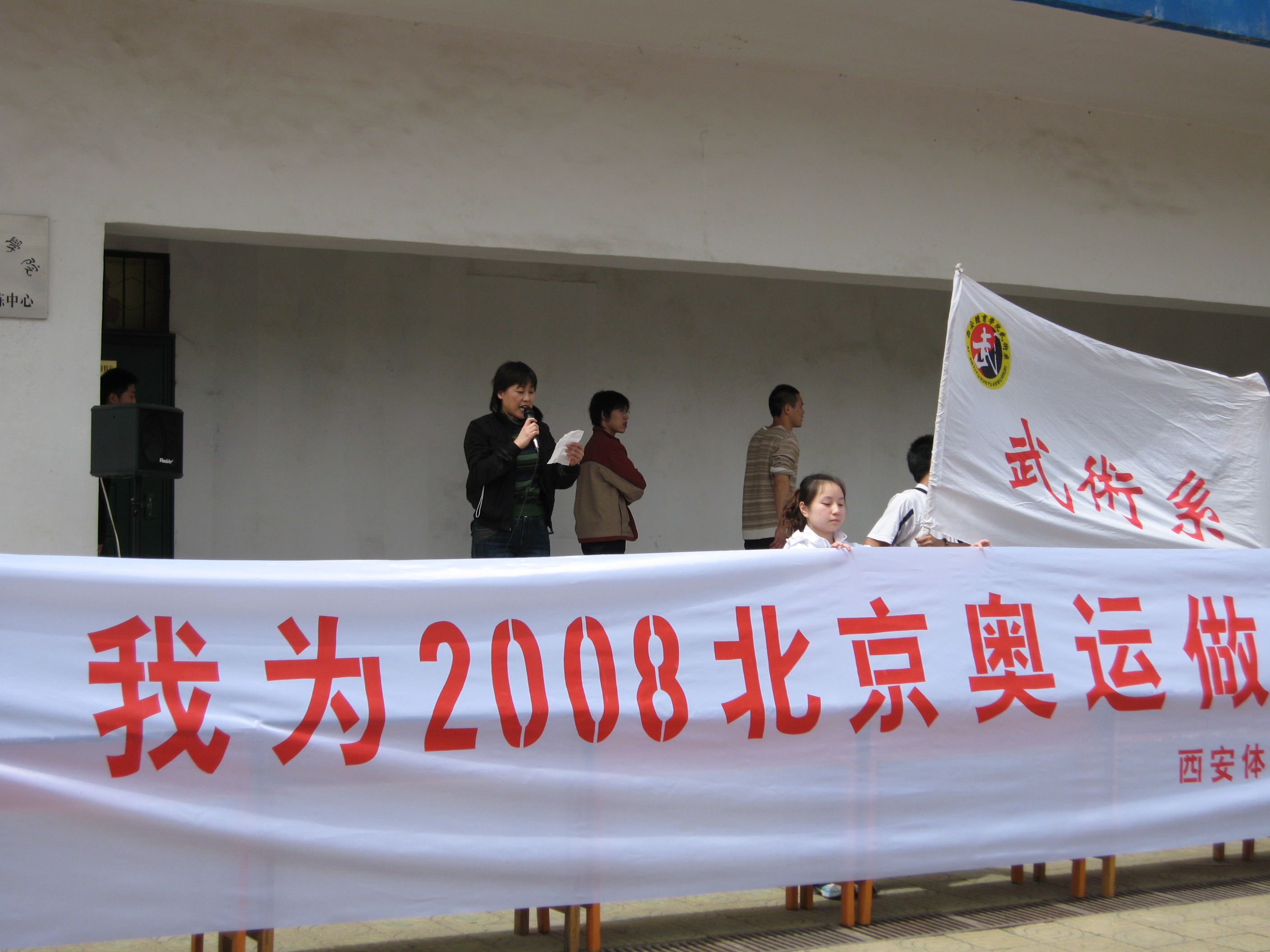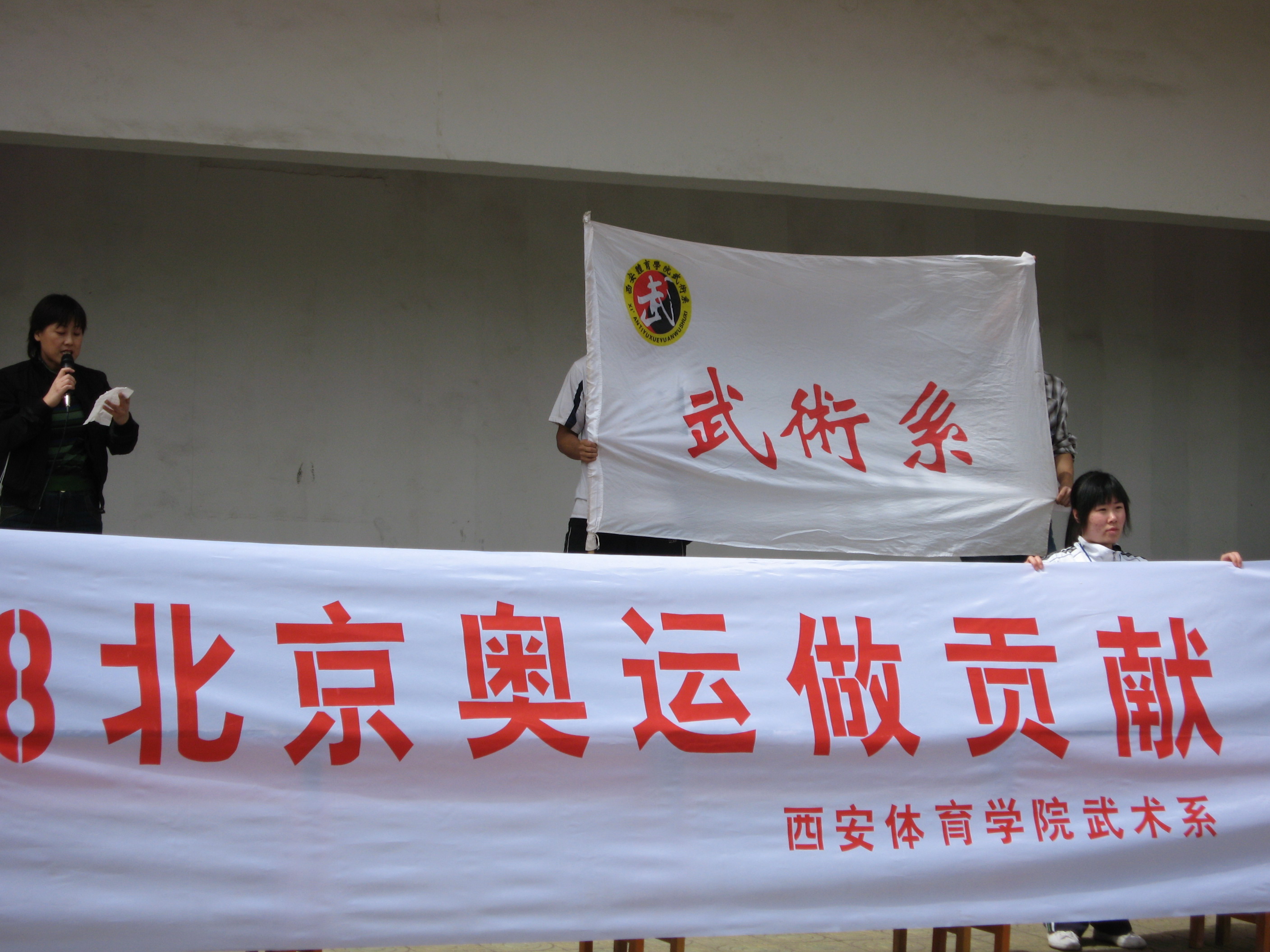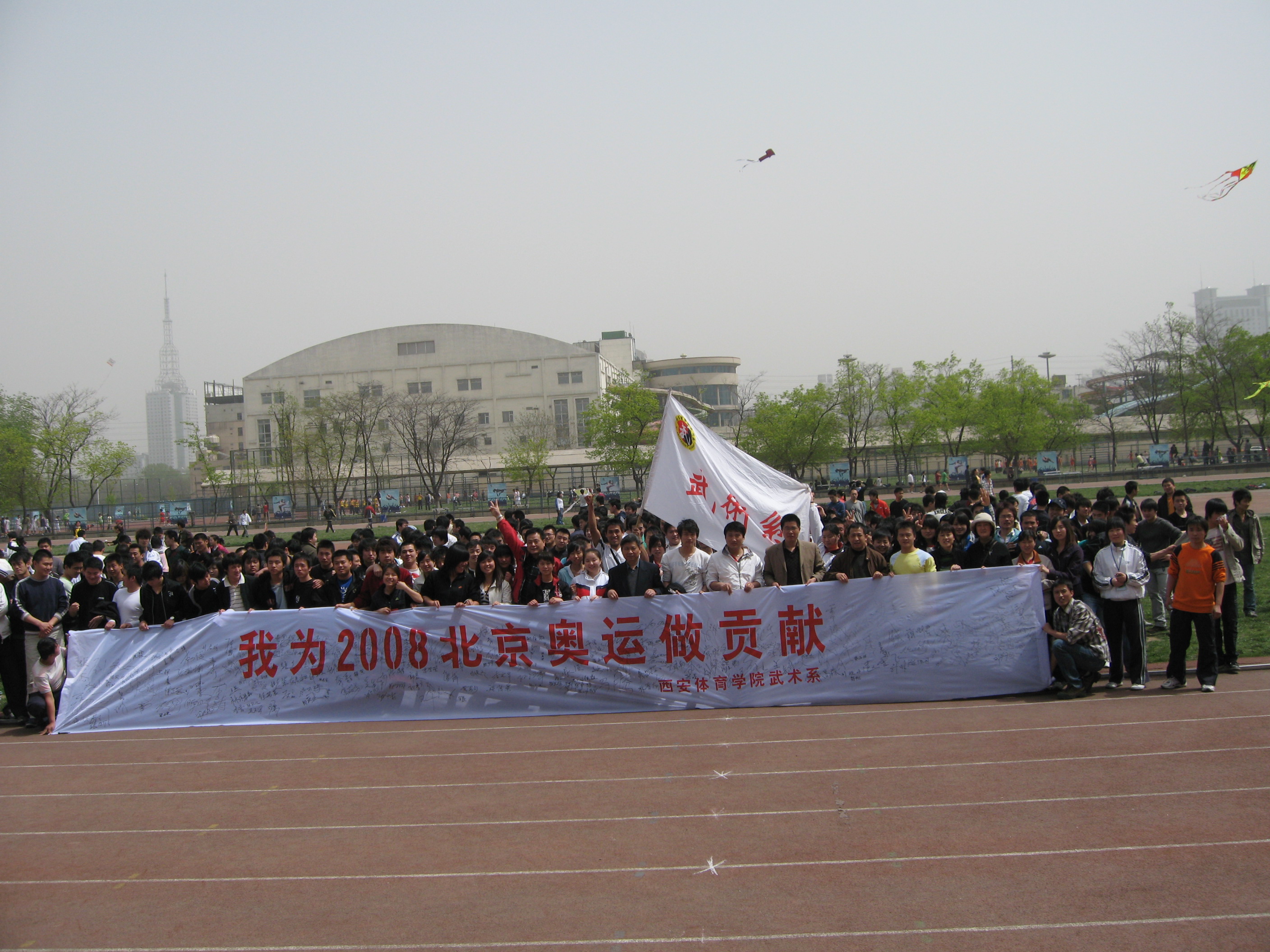 2008年8月8号日益临近,世界的目光即将聚焦北京奥运会。从2001年申奥成功开始,很多中国人不分男女老少,都投入到了为奥运做贡献的行列之中。作为西安体院武术系的师生,我们的内心对北京奥运会也充满了自豪和期待。