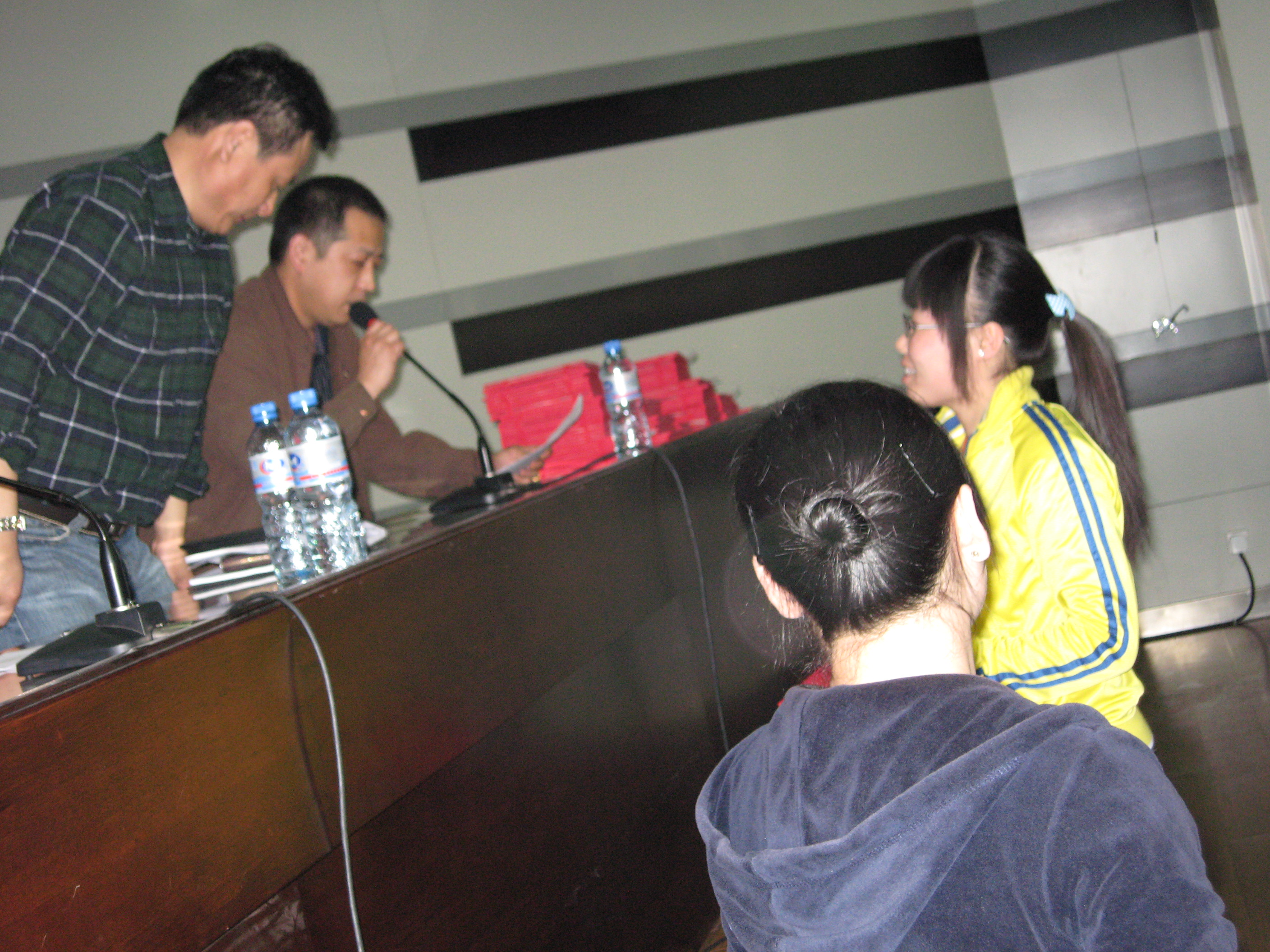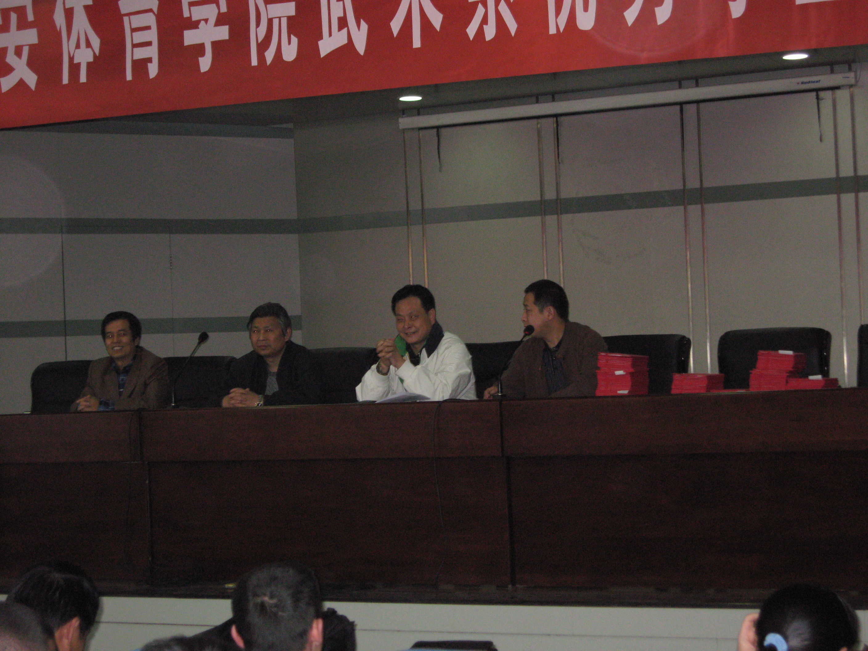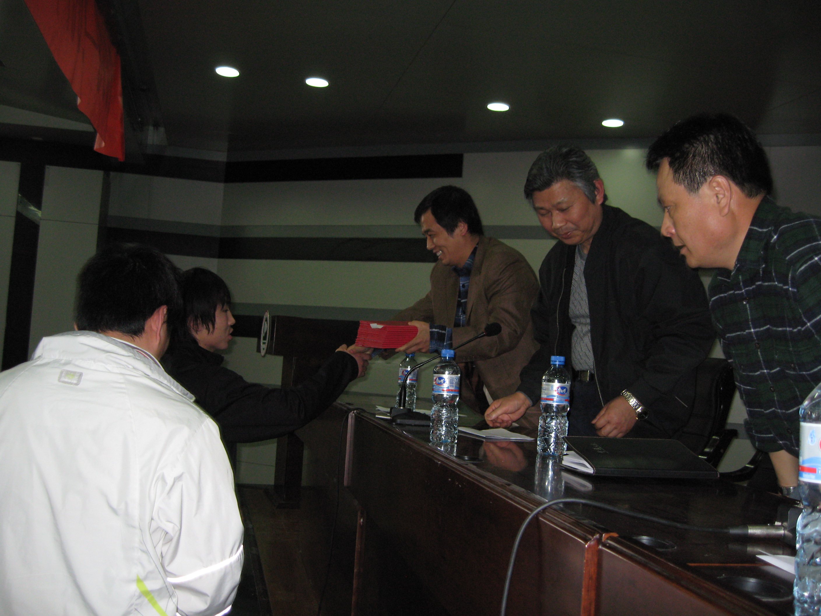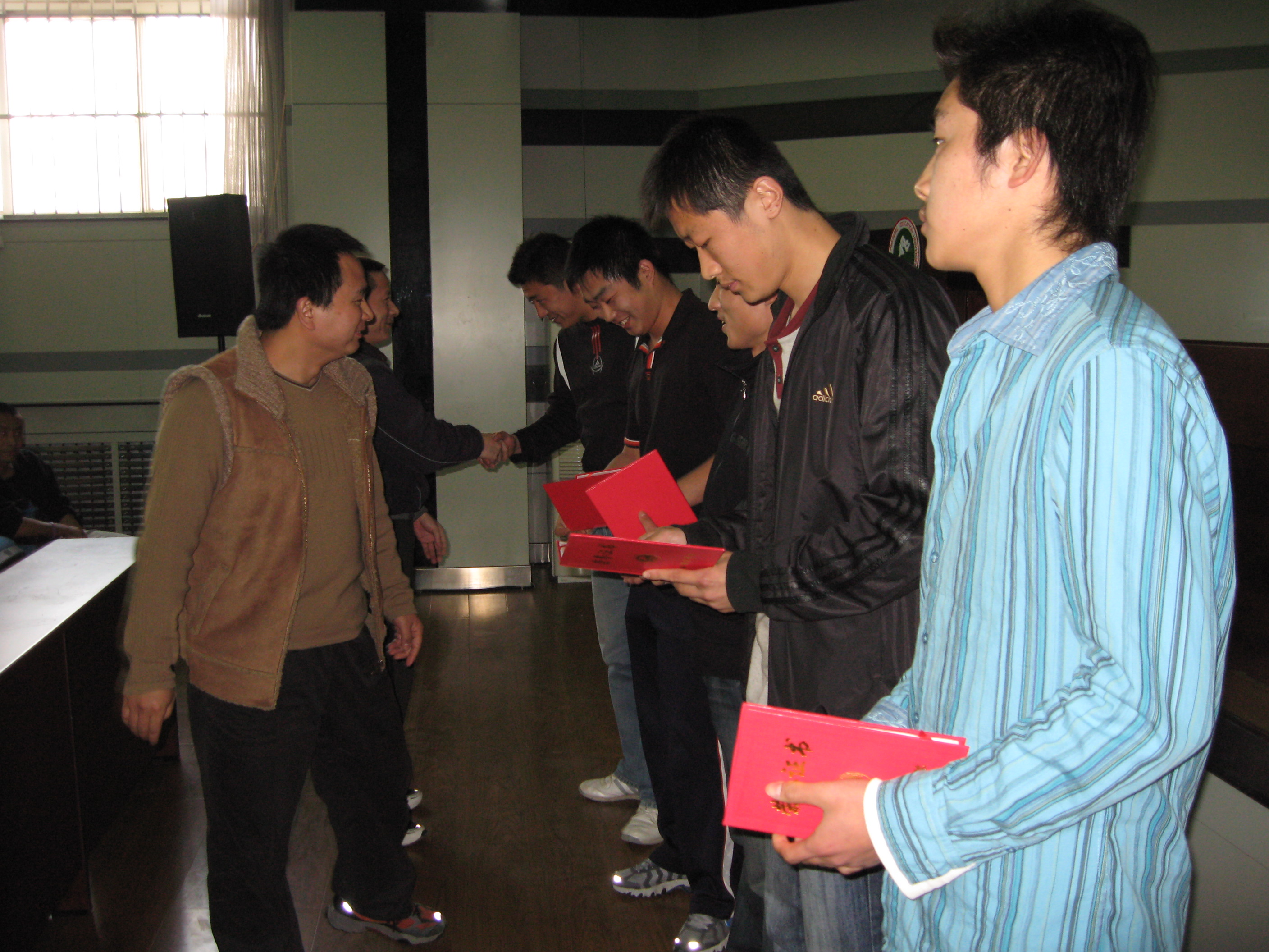 武术系主任陈亚斌教授、总支书记雷甲谋、教学副主任马文国博士、系办公室主任、系教学秘书、年级辅导员及各教研室主任和支部书记参加了表彰大会。会议由系办主任主持,首先由马文国副主任宣布了被表彰学生的名单,随后由陈亚斌主任和雷甲谋书记讲话。他们对被表彰的同学给予了肯定和鼓励,同时也对全系师生在过去一年中的工作和学习做了充分的肯定,并免励大家在新的一学年中再接再厉,争取取得优异的成绩,为武术系的发展尽一份力。