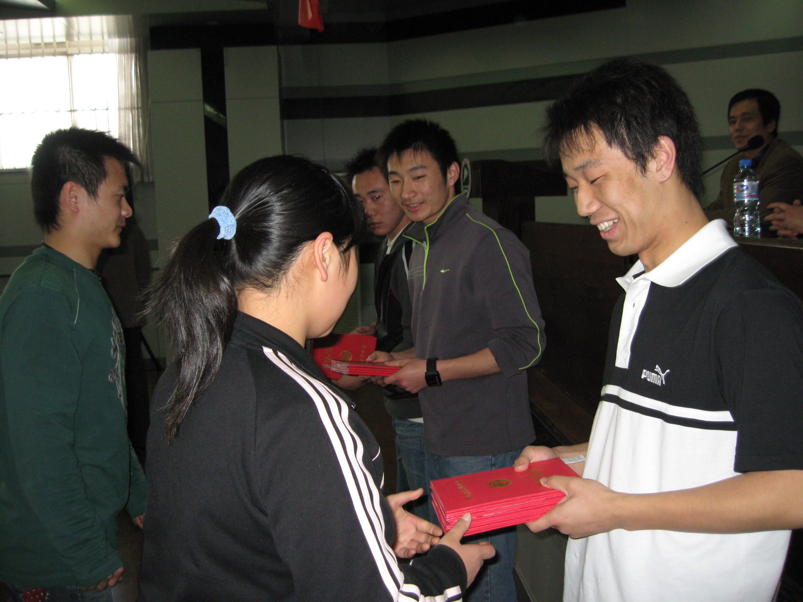 最后由系领导和老师们给受表彰的同学们颁奖并合影。