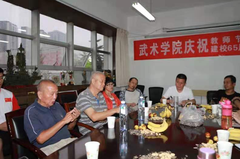 武术学院退休教师耿鸿鹏、白鸿顺两位前辈回顾了武术学院的发展、创建历程,看到学院今天的发展内心十分高兴,希望大家搞好团结,把武术学院建设好!