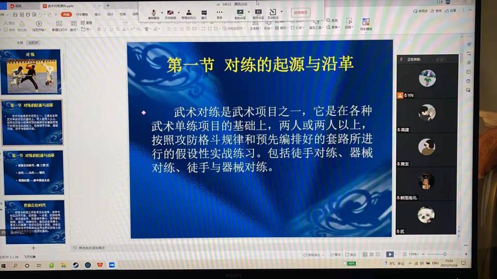 疫情就是命令,防控就是责任。根据学校疫情防控办的要求,为切实做好疫情防控期间教育教学工作,既保障师生的身心健康,又确保教育教学质量,12月21日起全校开展“停课不停学”线上教育模式。武术学院领导班子高度重视疫情防控工作,立足实际,科学布署,有力有序的推进学生学习工作。