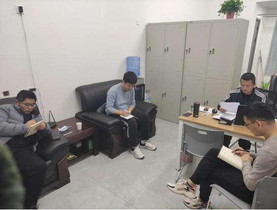 1224日上午1050武术学院在鄠邑校区2021级年级办公室召开辅导员工作会议,含光校区2019级辅导员兼年级主任王华、2018级辅导员李广玉采用线上,2020级辅导员贺去非、2021级辅导员智文飞、兼职辅导员王涛采用线下参加,会议由总支书记兼副院长朱舰主持。