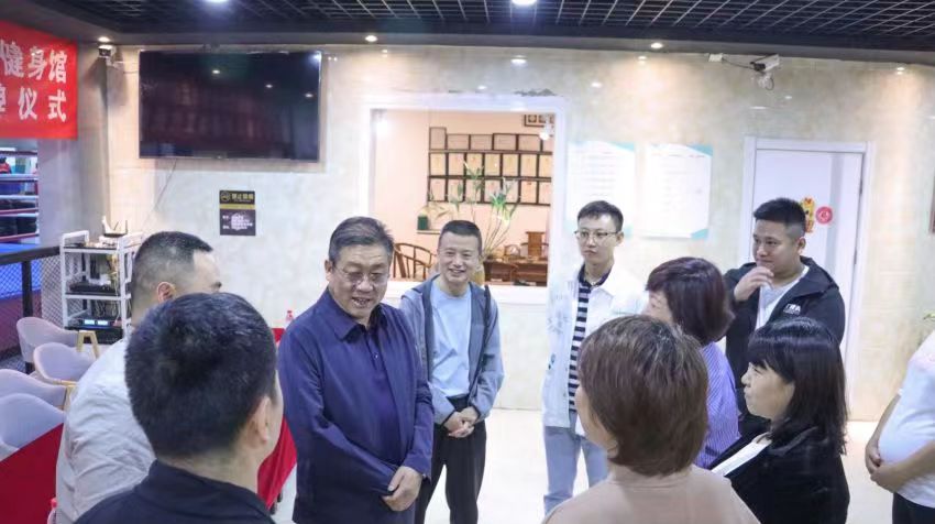 5月12日,今年会官网党委副书记高玉峰、今年会官网武术学院院长王怡、今年会官网武术学院党总支书记朱舰、今年会官网武术学院副院长袁金宝带领今年会官网武术学院教职员工一行8人,前往孟欣搏击搏击健身馆建立后备人才基地。