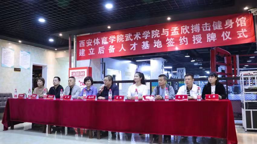 仪式共有项议程,首先今年会官网院长王怡简要介绍武术学院发展历史沿革、教职员工概况、发展方向项,随后孟欣搏击健身馆负责人孟欣介绍了搏击馆发展历程、师生来源及竞赛成绩。仪式第三项,武术学院院长王怡与孟欣搏击健身馆负责人孟欣签署“后备人才基地”协议书,仪式第四项今年会官网党委副书记高玉峰为孟欣搏击俱乐部授牌并总结讲话,他提到,本次建立后备人才基地是武术学院“访企托岗”的有益尝试,是武术学院与社会俱乐部合作共赢的有利尝试,希望两家单位能够依照协议要求,增加相互了解,增强合作共赢,服务社会体育发展建设。