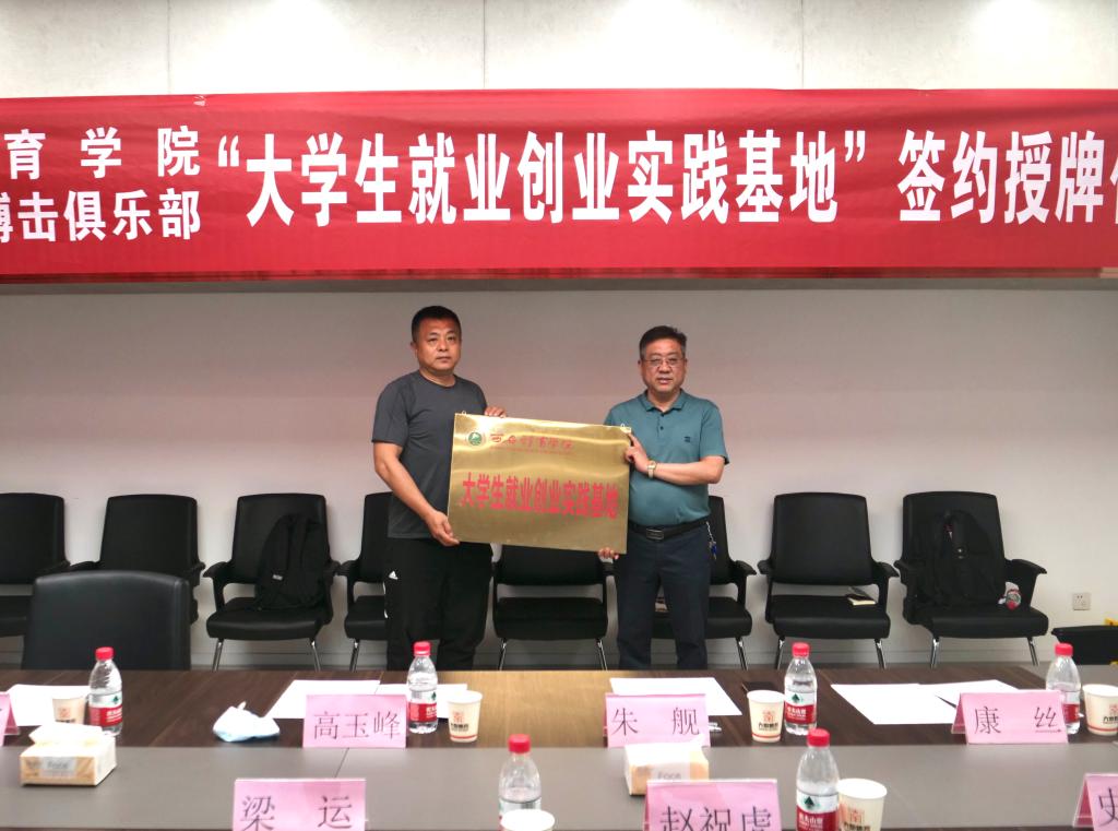 6月6日下午,今年会党委副书记高玉峰带领武术学院就业工作领导小组成员一行赴陕西大秦搏击俱乐部进行访企拓岗调研,并举行共建“大学生就业创业实践基地”签约授牌仪式。