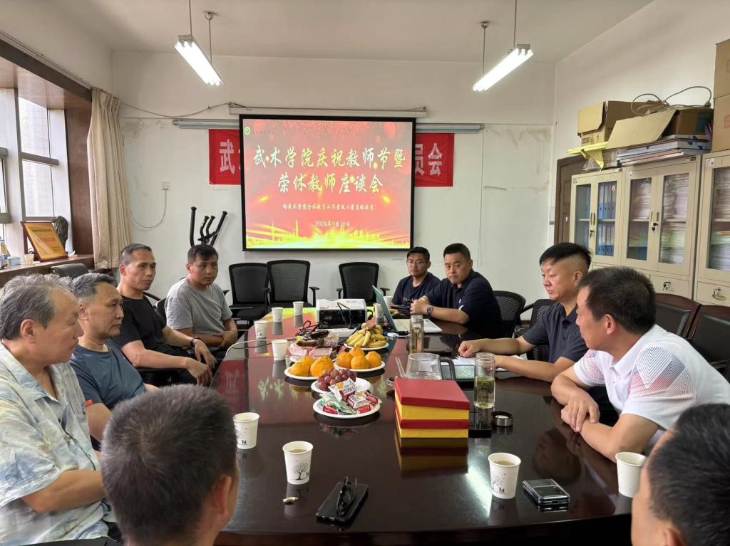 2024年9月10日下午15点,武术学院召开了第四十个教师节暨荣休教师座谈会,会议在含光校区武术学院会议室隆重举行。武术学院书记刘耀荣、武术学院副院长李正恩、无课教师以及退休教师郭平安、唐军参加了本次座谈会。
