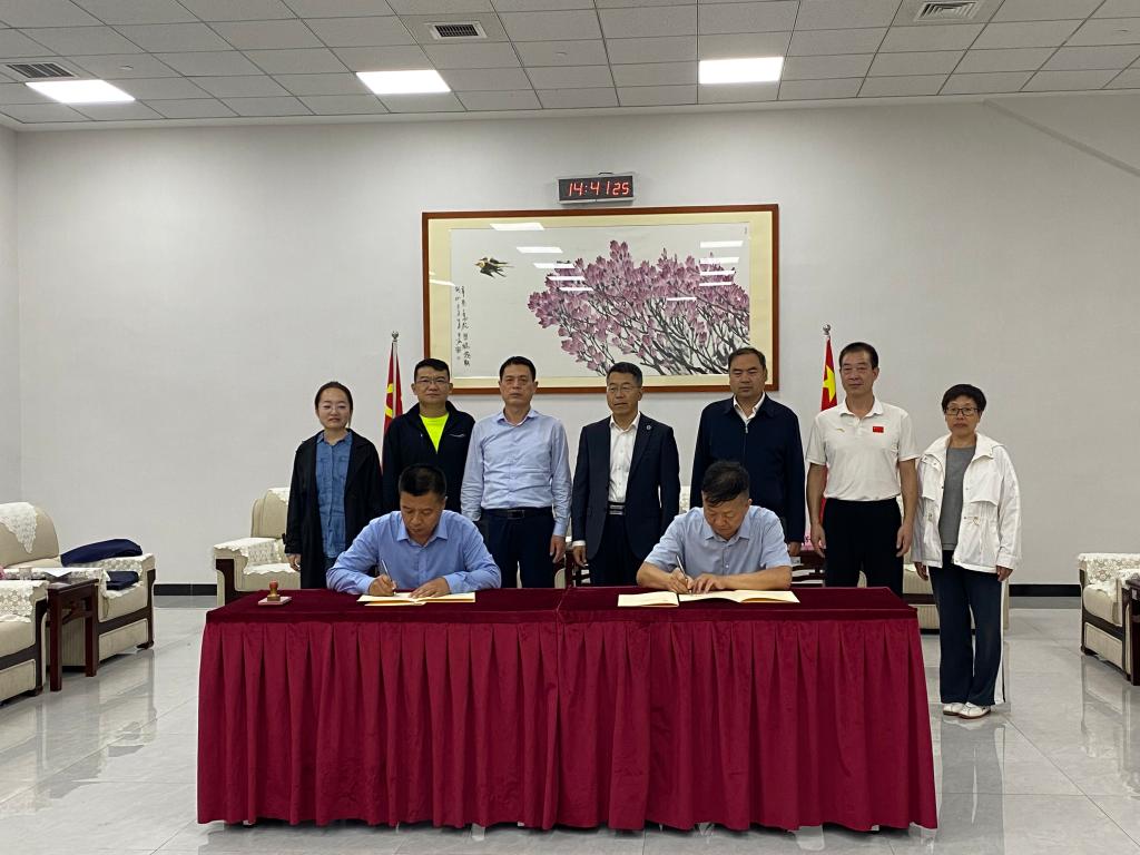 武术学院副院长李正恩(右一)、铜川市耀州区中医药发展中心主任郝廷荣(左一)签署合作协议
