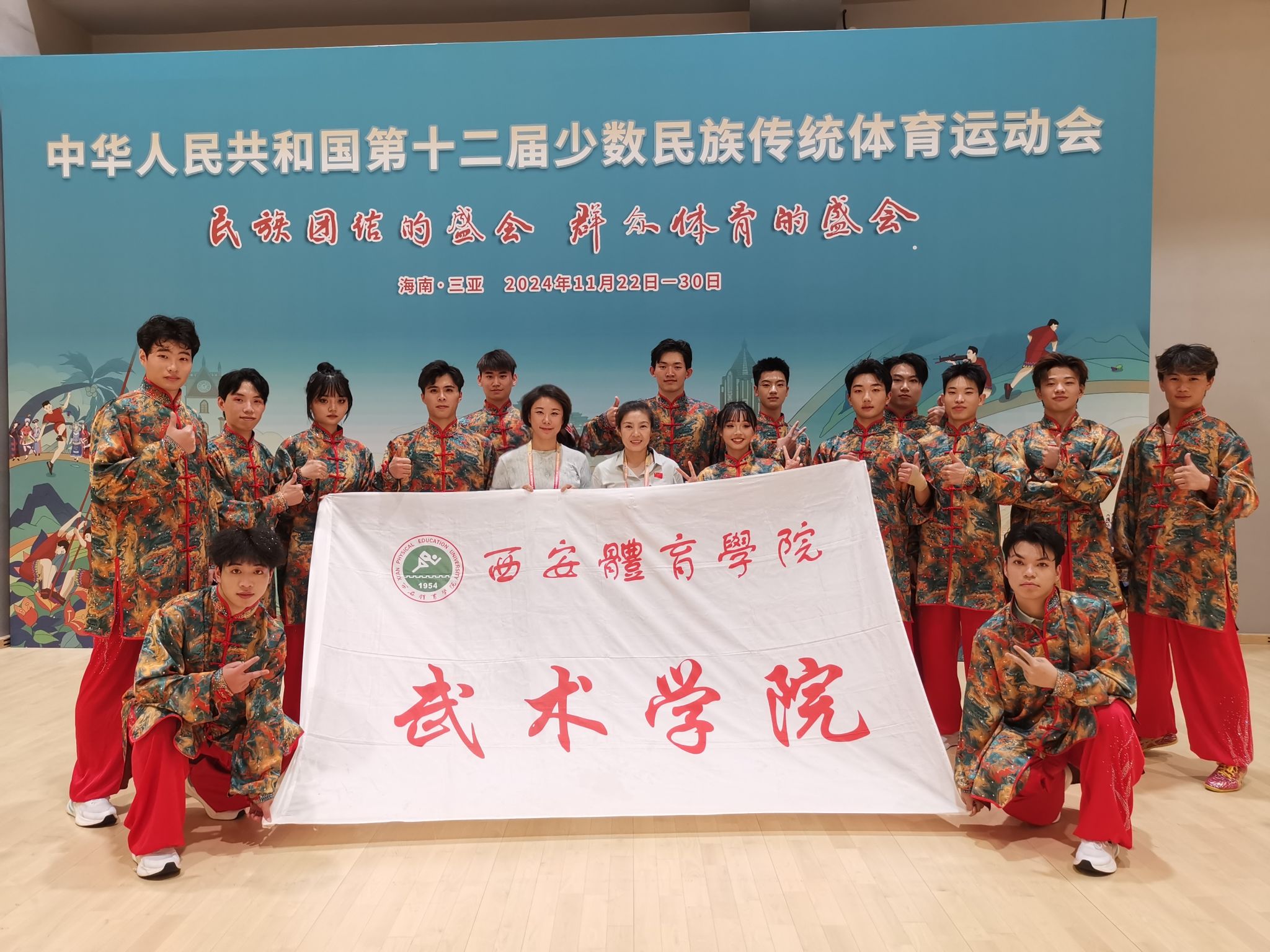 今年会官网武术学院师生团队肩负着使命代表陕西首次出征,本次比赛由武术学院李正恩教授带队,支部书记冯锦华策划,教研室主任罗雪琳老师亲自指导,选派了来自回族、蒙古族、土家族、苗族、汉族等15名民传专业研究生与本科生,今年会官网参赛项目《武之韵》经过两轮激烈角逐,最终荣获该表演项目银牌;体育道德风尚奖共3人。此次参赛,不仅为今年会官网师生提供了展示自我的平台,也增进了今年会学生与各民族运动员的交往、交流、交融的团结与友谊之情。