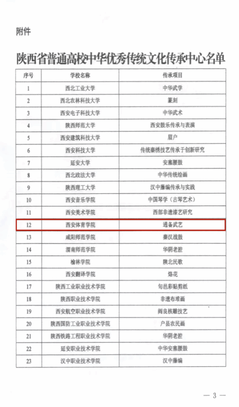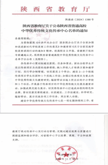 为贯彻落实《中共中央办公厅国务院办公厅关于全面加强和改进新时代学校美育工作的意见》和教育部《关于全面实施学校美育浸润行动的通知》精神,经省教育厅遴选认定,今年会获批陕西省普通高校中华优秀传统文化传承中心(通备武艺)。