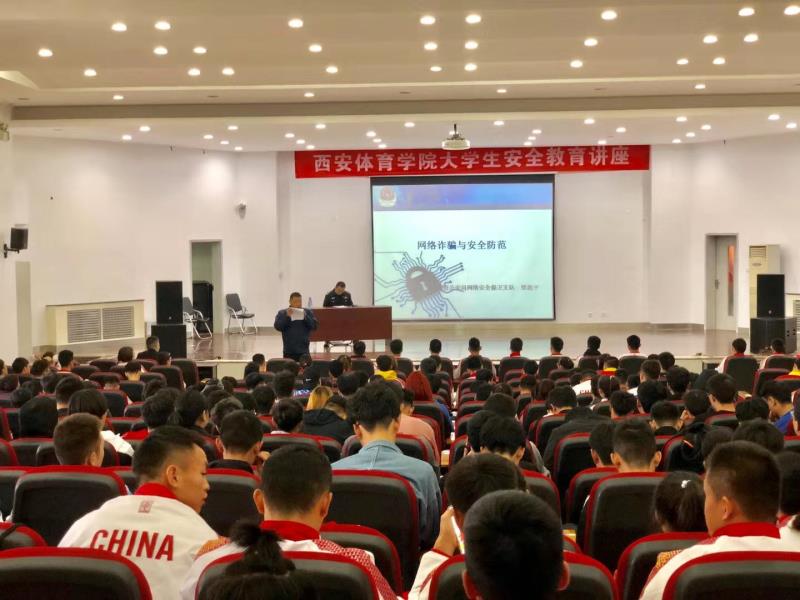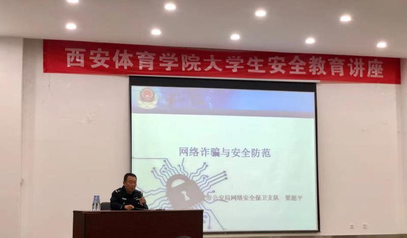 为深入推进我院“平安校园”创建工作,进一步加强学生的法制教育、增强法制观念、预防和减少学生违法犯罪,促进我院学生法制工作的科学化、制度化、规范化建设。10月16日下午,以“网络诈骗与安全防范”为主题的大学生安全教育讲座在教学楼五楼报告厅举行,讲座特邀西安市公安局网络安全保卫支队梁愿平队长担任主讲。武术学院200名学生参加了此次讲座。