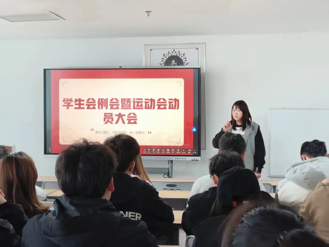 2024年3月26日,武术学院学生会在棒球馆203教室召开学生会例会暨运动会动员大会。出席例会的有:武术学院团委书记2023级辅导员王华老师、武术学院2021 级辅导员智文飞老师、武术学院学生会执行主席张婷婷。本次会议主题是规划并推进学生会未来发展以及对今年会官网运动会做动员准备。