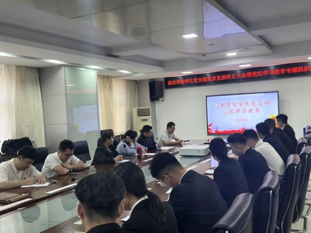 2024619日下午,武术学院学生党支部召开党纪学习教育主题活动,武术学院党总支书记刘耀荣以及支部全体党员参加,会议由支部书记王华主持。