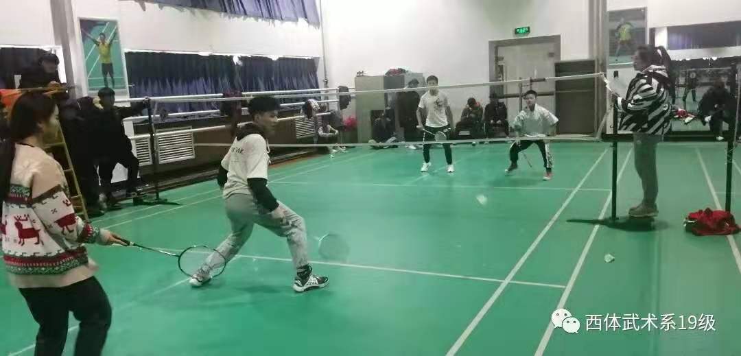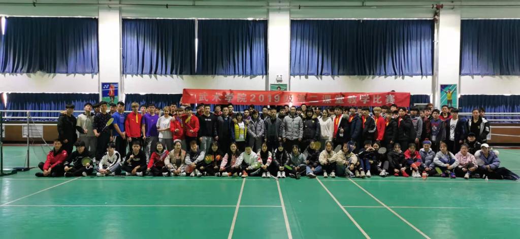 按照学院的安排,利用学生的课余时间,武术学院19级开展了羽毛球学习第二课堂活动,旨在促进学生素质的全面优化及提高,通过羽毛球的学习,使学生初步掌握羽毛球的基本技能,同时增长羽毛球裁判的基本知识。为了巩固与展示第二课堂教学成果,进一步增进同学们之间的情谊,1227号下午,武术学院19级第二课堂教学比赛在羽毛球馆如火如荼的展开。赛前武术学院王怡副院长,党总支书记朱舰,袁金宝副院长,辅导员王华、赵佳鹏老师来到羽毛球馆与参赛同学热情交流并预祝本次比赛圆满成功。