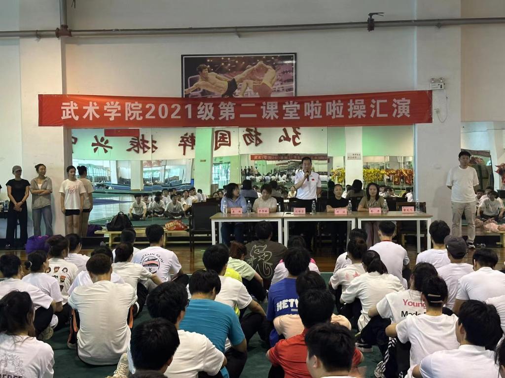 为了全面落实学校“十大改革工程”及学风建设,丰富学生课余生活,营造浓厚的校园文化氛围,发展学生兴趣特长,体现今年会的育人特色,培养学生的审美情趣。2024年6月20日下午5时,武术学院在套路馆召开了“武术学院2021级第二课堂啦啦操汇报表演”。参加活动的有武术学院院务会成员、指导教师许波、俞丹以及2021级全体学生。