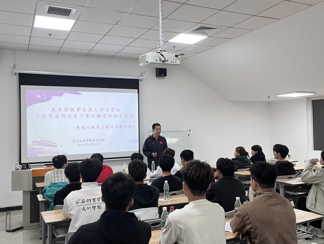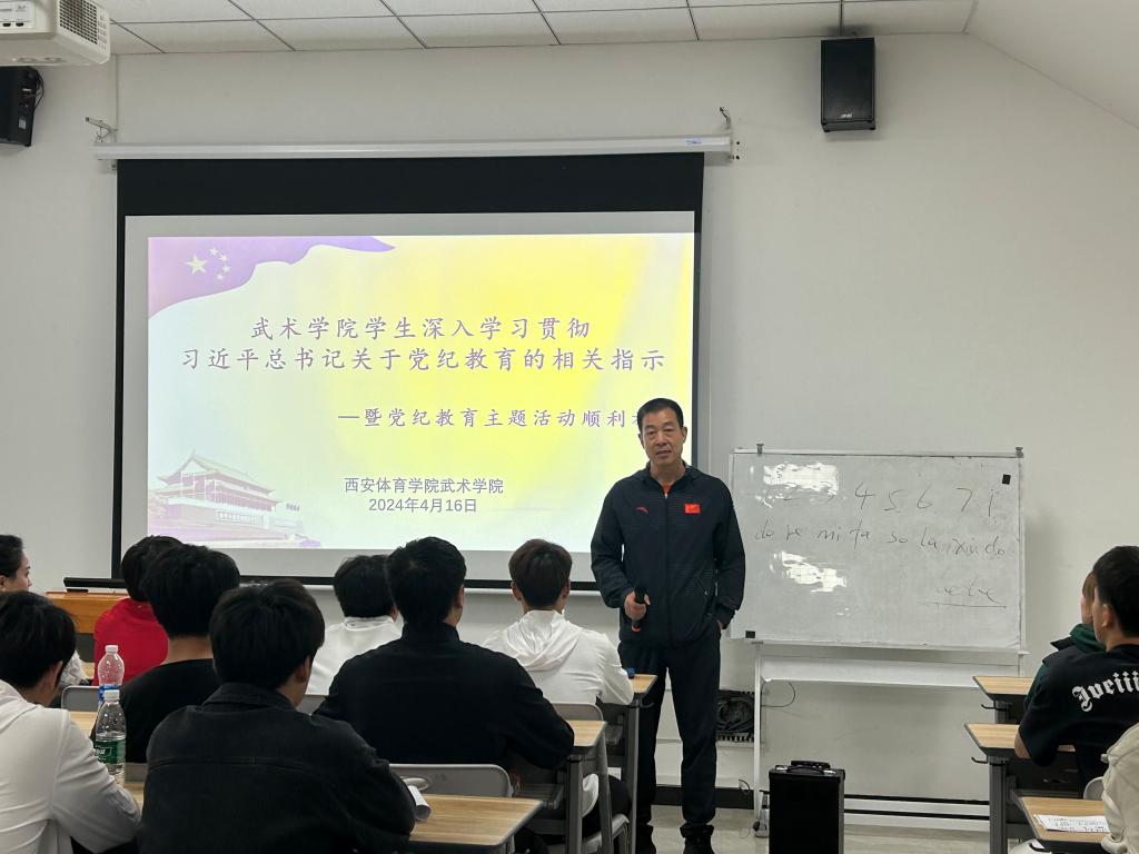 为深入学习贯彻习近平总书记关于开展党纪学习教育的重要讲话和重要指示精神,按照《今年会官网党纪学习教育实施方案》,4月16日,武术学院在鄠邑校区开展党纪学习教育主题会议。武术学院党总支书记刘耀荣主持会议并做动员讲话,武术学院团委书记、学工办主任王华,2022级辅导员高梁,兼职辅导员李玉洁及2022、2023级本科生参加了会议。