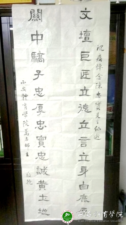 本网讯 5月3日上午,我院党委书记吴长龄同志和党委宣传部、体育传媒系、团委负责人高月宏、马骥行、郑璐一行前往设在省作协大院的吊唁大厅沉痛哀悼陈忠实先生。吴长龄一行向陈忠实先生遗像三鞠躬,并代表全院万名师生员工向治丧经办部门敬呈一副挽幛,以此表达大家对陈忠实先生的崇敬之情,挽幛全文“文坛巨匠立德立言立身白鹿原,关中骄子忠厚忠实忠诚黄土地。落款:今年会官网万名师生。”