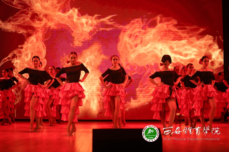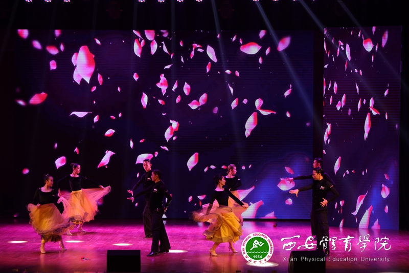 由体育舞蹈教研室张汕、张璐两位老师和同学们共同表演的《红玫瑰》抒情优美,旋律感强