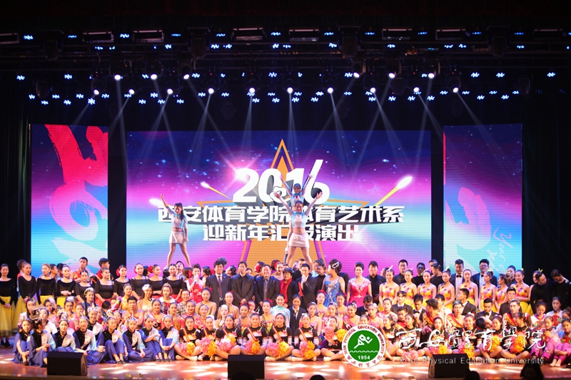本网讯 1月8日晚,能容纳1600人的艺术馆大礼堂内座无虚席,流光溢彩,灯火辉煌,掌声喝彩声连绵不断,我院体育艺术系迎新年汇报演出在这里隆重举行。党委书记吴长龄、党委副书记王跃生、副院长陈彦、副院长刘新民、院长助理段秋学等领导出席了晚会。200名来我院参加第二次全国青少年校园足球体育骨干教师国家级专项培训的陕西足球特色学校教师们也应邀观看了演出。