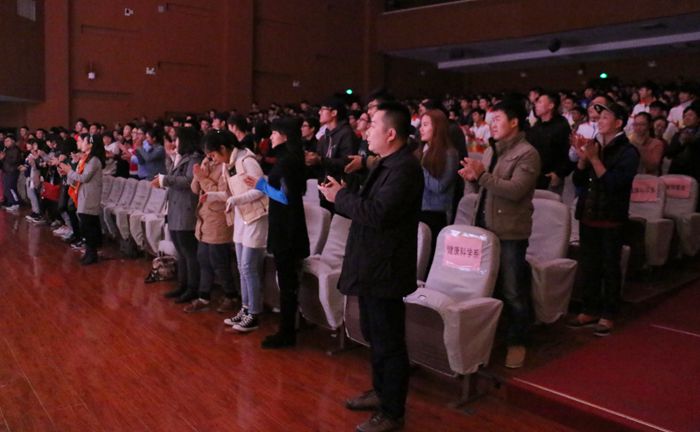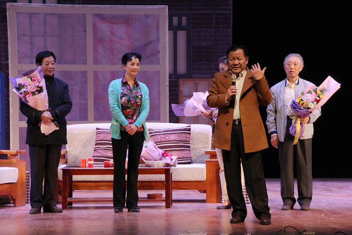 演出结束后,全体观众忍不住起身热烈鼓掌致敬,10名学生代表走上舞台向话剧的主创人员献上了美丽的鲜花。党委书记吴长龄特意向在场观众隆重介绍主要演员——著名表演艺术家、国家一级演员刘远老师的艺术成就,他对演职人员的精彩演出表示由衷的敬意,同时对我院师生井然有序又充满激情“进入角色”地观看话剧的表现给予充分肯定。