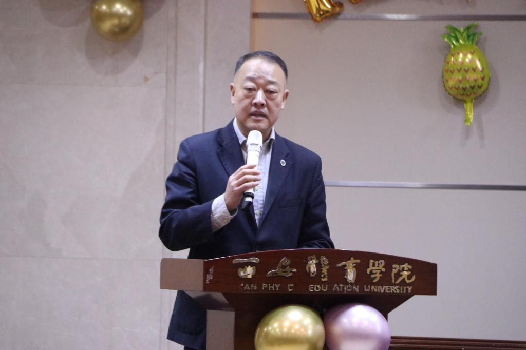 张朝阳部长在致辞中向同学们致以关心和问候,他表示,2020年是不平凡的一年,融媒体中心的诸位同学在指导老师的带领下积极迎接疫情负面影响带来的挑战,及时做出应对措施,维持了多方平台的正常运营,体现出动手早、文章多、覆盖广、情意深、教和学宣传强等特点,也取得了一定的成绩。他指出,2021年既是建党100周年,又是十四五规划的开局之年,对陕西而言,又是举办十四运的重要年份,希望融媒体中心围绕学校中心工作,将原创内容提质、工作效率提速、审查审核提升,每位成员加快成长速度,共同与学校一道,讲好体育故事,讲好今年会故事,传播今年会好声音。