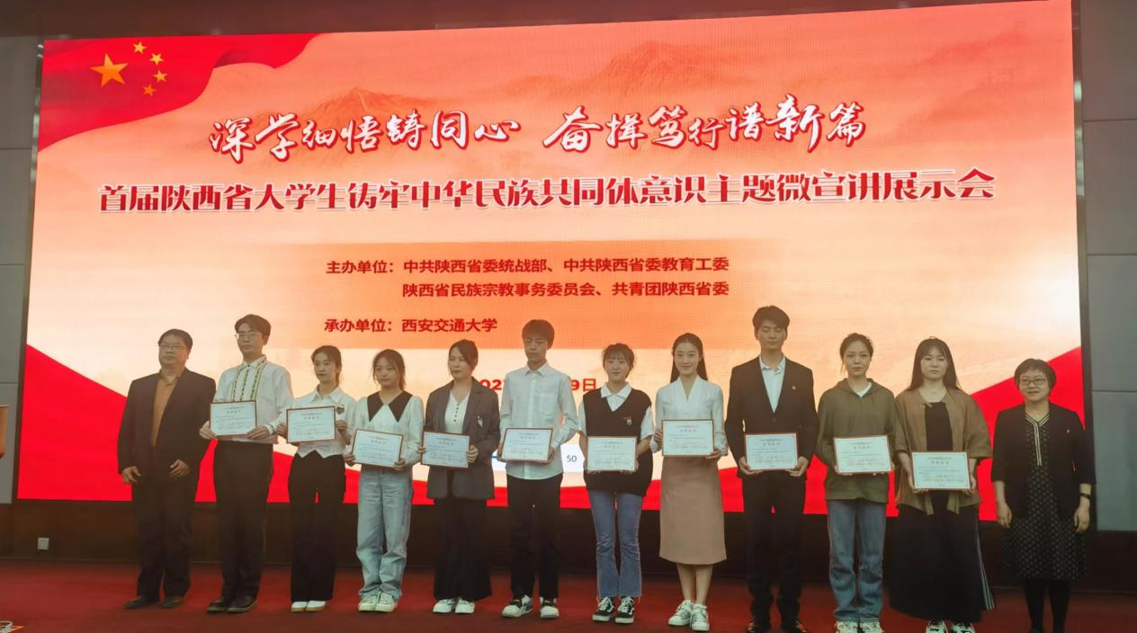 现场获奖代表结合自身经历、身边典型,生动阐释铸牢中华民族共同体意识的深刻内涵和重要意义。现场还发布了陕西省高校铸牢中华民族共同体意识宣讲课单,旨在通过组建大学生微宣讲团、举办主题微宣讲比赛、发布宣讲课程等系列活动,推动我省大学生以实际行动投身铸牢中华民族共同体意识宣传教育,为构筑中华民族共有精神家园贡献青春力量。