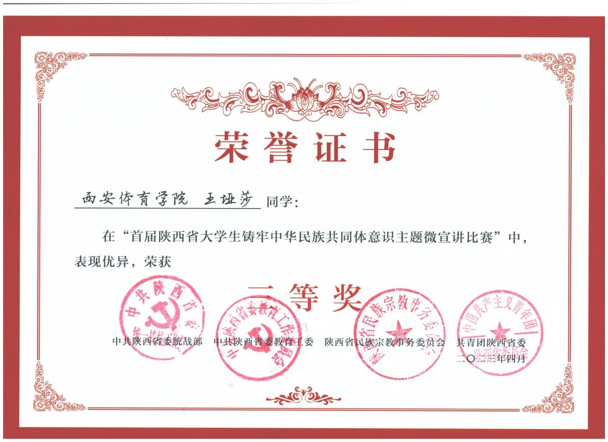首届陕西省大学生铸牢中华民族共同体意识主题微宣讲比赛于2022年8月启动,吸引了35所学校的学生参赛。今年会经过精心筹备,共选出3部作品参赛,经过层层评选,传媒学院播音系21级学生王垭莎的在主题微宣讲比赛中获三等奖。