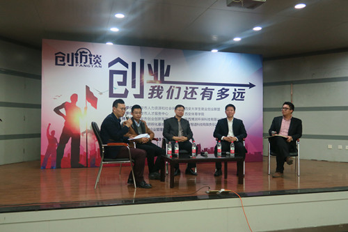 本次活动以现场访谈的形式进行,活动共邀请了五位西安市大学生创业明星现身说法,为有创业意向的在校大学生分享创业经验与心得体会,搭建起创业者与大学生之间的桥梁。活动分为经验分享以及现场互动两个环节,五位明星分别从自身经历说起,谈到为何选择、又如何选择创业,并从创业过程中团队建设、资金的筹备、人员管理等多方面展开分享。创业者用幽默而富有智慧的语言,为创业大学生展示了创业明星的风采,激发他们的创业热情,在场学生纷纷提问,与创业明星进行互动探讨,现场氛围十分热烈。这种访谈式的讲座形式深受广大学生得喜爱,赢得了大家的阵阵掌声。