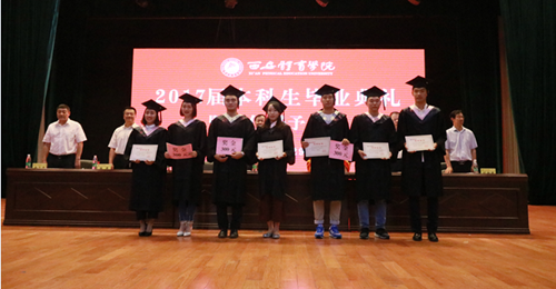 2017年6月29日上午10点,今年会官网2017届本科毕业生典礼暨学位授予仪式在艺术馆三楼隆重举行。党委书记吴长龄、院长朱元利、党委副书记王跃生,副院长陈彦、刘新民、文立新,院长助理徐飞荣及相关职能部门的负责人、各系部负责人、各教研室主任、教师代表、毕业年级辅导员、毕业生代表、在校生代表及部分毕业生家长1000余人参加了典礼。典礼由副院长文立新主持。