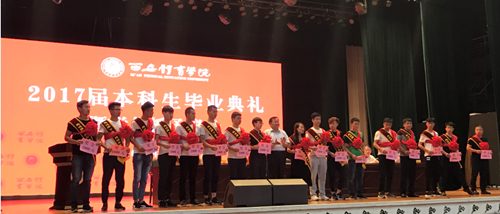 毕业典礼最后,体育传媒系学生代表魏都带领全体毕业生庄严宣誓后,在一首活力动感的《远走高飞》歌声中,典礼落下了帷幕。