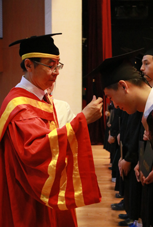 院长朱元利同志代表今年会官网全体师生向2017届学生顺利毕业表示衷心祝贺。他以《用体育精神 安身立命 建功立业》为题,在致辞中讲到:“老师是这个世界上唯一一个与你没有血缘关系,却愿意因你的进步而高兴,退步而着急,满怀期待,助你成才,陪桃育李,甘为人梯并且无怨无悔的人”寄语学生要感恩老师的辛勤栽培。朱院长在寄语中指出:毕业后,你们有两个出身,一个是故乡,一个是母校。并且,强调了母校有着母亲的情怀,希望毕业生明白,你因校荣,校凭你傲的道理。看到现场的家长们时,朱院长还嘱咐学生要感谢父母。在讲话中,朱院长不禁感叹:“忘不了2014年学校60周年校庆时你们的青春活力;忘不了你们千人齐唱“五月鲜花”情豪迈;忘不了2016年央视猴年春晚,你们傲雪凌霜,在春晚舞台上载歌载舞的盛大场面;忘不了暑期社会实践,你们将体育精神传播到祖国大地;忘不了你们积极参与志愿服务与支教活动;忘不了你们无论酷暑寒冬坚持出早操,风雨无阻上专项课;忘不了你们响应祖国号召,毅然选择到新疆和田、到西藏阿里、到军旅等急难险重的地方去;忘不了关键时刻勇救落水儿童的朱海楠老师、义务辅助学生出操的赵卫民老师、十几年如一日辛勤培养出全国锦标赛铅球项目冠军的“投掷妈妈”马屹教练、还有被上海体育学院录取的博士研究生黄悦与导师白石教授难忘的师生情谊。说到动情时,朱院长还回忆到学生们独特的表达方式:今年3月27日,当国足赢了韩国,你们自发的走出宿舍,庆祝比赛。而每当断网或停电时会引发你们任性发飙。也是这样的发飙,让你们在遇到不法分子时,用你们独特的方式,表达着今年会人的古道热肠、正义和良知。致辞的最后,朱院长还对即将毕业的学生们提出了五点要求:一要当自强、二要多读书、三要严律己、四要志怀远、五要用体育精神,安身立命,建功立业。朱院长希望学生能够谨记“严谨、创新、团结、拼搏”的校训,带着体育精神,在祖国的四面八方,生根开花,结出令母校欣慰的和荣耀的满园桃李,无论将来你们人在何方、身在何境,母校都永远是你们的精神家园。